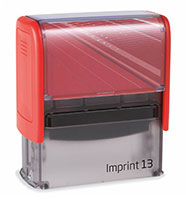 In wenigen Tagen nach Ihrer Stempel-Bestellung erhalten Sie Ihren Imprint 13 in ausgewählter Farbe mit eingebautem Stempelkissen in gewünschter Abdruckfarbe und zentriert positionierten Textplatte.